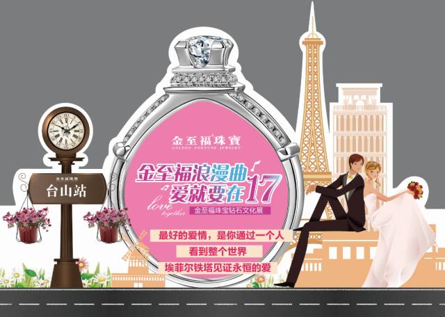 2017真情奉献——“金至福浪漫曲,爱就要在一起”钻石文化展。为每一对幸福爱侣倾情打造——“爱的印记”、“ 巴黎风情”、“ 心心相吸”钻石系列产品。