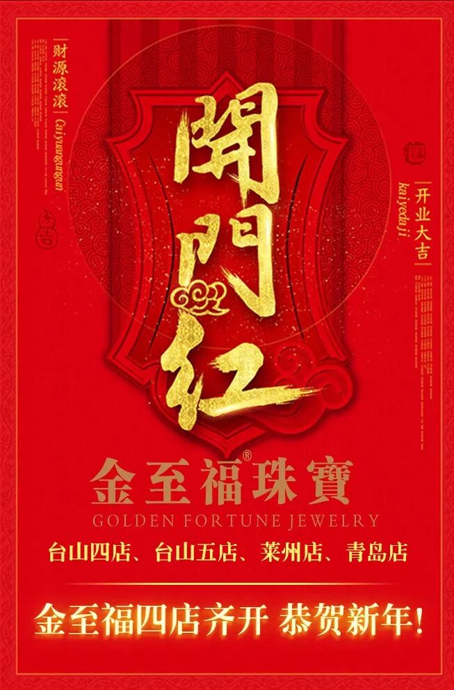 2018.01.11 山东莱州金至福珠宝店盛大开业 多年蓄势 一展光华 2018.01.18 山东青岛金至福珠宝店盛世开业 引领黄金抢购热潮 2018.01.20 台山金至福珠宝店 三店开业五店同庆 惠矩全城 势头强不怕骄傲! 金至福珠宝这一个月不简单 ●台山四店、台山五店、莱州店、青岛店 三城四店●奢华启幕 恭贺新年 金至福 山东莱州店 ●2018年1月11日,以璀璨珠宝赞美现代新女性的光芒“让珠宝闪耀人生每个幸福时刻”山东莱州大润发浪湖商场一楼金至福专柜,率先接力,迎接金至福珠宝点的盛大启航 金至福山东莱州新店开业,店面闪耀揭幕亮相,精致大气的店面设计,受到现场消费者的纷纷驻足。全品类的珠宝款式、时尚优雅的购物空间,为追求完美的消费者营造了卓越的购物体验。金至福青岛新店开业期间,更有好礼相送及多重优惠活动。 延续品牌一贯优雅、灵动的风格理念,通过现代化的设计和灵动的格调呈现出一个奇妙的珠宝世界。作为一个诞生于30多年前的香港珠宝品牌,优雅与品味被深深地印刻在金至福的DNA之中,以极致匠心缔造传世作品,将东西方美学融于一体便是金至福的致美之处,一场邂逅优雅的华丽庆典已然开启。 金至福 山东青岛店 1月18日-2月1日 金至福珠宝青岛店 开业嘉年华 金至福作为高端珠宝品牌,以颠覆性美学标准亮相青岛的同时,还为每一位顾客奉上了一场爱与时尚的视觉盛宴。开业活动当天,金至福用华丽视觉为人们陈述了独特的爱情理念和美学概念,吸引所有目光瞩目,让人仿佛置身于一个装点着闪耀珠宝的未知世界,迫不及待想要探索。 金至福是铭刻岁月真爱记忆、打造中国情感文化传承的珠宝品牌,致力于让更多人买得起珠宝、看得懂珠宝,买得明白、买得放心。其卓越工艺与自然设计风格优雅地呈现了“让珠宝闪耀人生每个幸福时刻”的情感理念。每一件至诚之作,都完美融会了精致品味与本真纯粹,成就让美好时光永存的真情信物。 金至福珠宝一直致力诠释宝石与精工之外的独特情感价值,珍视珠宝与情感的创意表达。作为“时光信物”概念的首创者和践行者,金至福力求每件珍品都兼具情感与时尚意义。沉淀的情思,积累的爱意,以金至福珠宝为证,在时光里凝固成永恒。金至福珠宝,成为国内专注于通过珠宝传递人生不同阶段情感的珠宝品牌。 金至福 台山台州店 一向以“美丽人生,幸福传承”的品牌理念和时尚设计的产品款式而闻名,受到全国各地消费者喜爱的香港金至福珠宝,1月盛大进驻福建省台山市,在台山台中珠宝城华丽绽放。 ▲第四分店位于步行街肯德基旁 (金至福珠宝城店) 为了给消费者们带来更舒适便捷的购物体验, 台山店在店面设计和装修风格上秉承金至福珠宝一贯的装饰风格, 形象时尚大气。 从灯光、柜台、道具到服饰礼仪等处处追求完美, 呈现品牌的时尚品位与高雅气质。 并增加了金至福珠宝的品牌印记产品系列形象, 更符合年轻人的需求, 统一体现“尊贵、时尚、舒适”的风格, 真正为消费者提供一个时尚、宽敞、舒适的购物环境。 第五分店位于:步行街天桥旁 延续第四分店的风格 为更多的年轻时尚群体 打造一个轻松愉悦的购物环境 金至福珠宝把高端的设计理念和优质的客户服务带给消费者,为传世而闪耀,高端会所型门店、深度互动式服务、传世永恒性产品、国际品牌化管理,全方位、多角度的深度服务,给消费者带来极致体验! 香港金至福珠宝2018震撼出击,新店遍地开花,展现出了生生不息的强劲动力。相信台山店的盛大开业将为广大台山群众带来更多时尚、实惠的珠宝产品,令台山消费者享受到一流品牌带来的幸福体验。